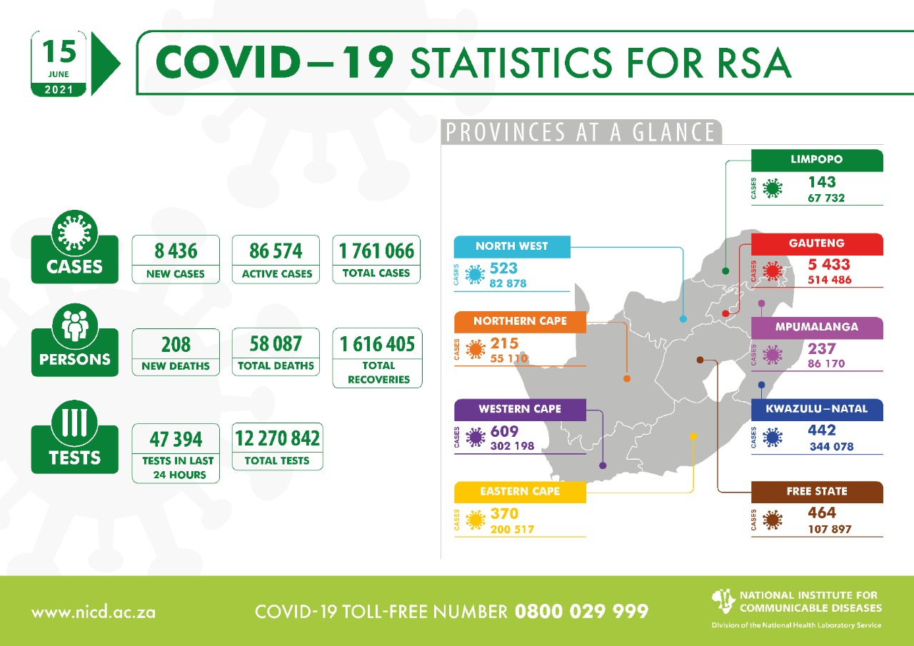 Coronavirus South Africa Covid 19 Statistics For Rsa 15 June 2021 Africanews